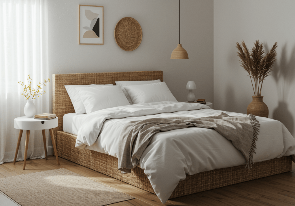 Throws introduce softness and visual interest with minimal effort. Draped casually, they keep the room from feeling rigid or overly styled. Textured fabrics help balance sleek surfaces. This is particularly useful when the bedding itself is simple or monochromatic.